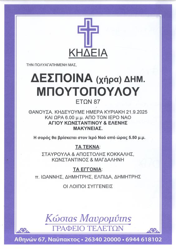 · Κηδείες ΝΑΥΠΑΚΤΟΣ – ΑΙΤΩΛΟΑΚΑΡΝΑΝΙΑ